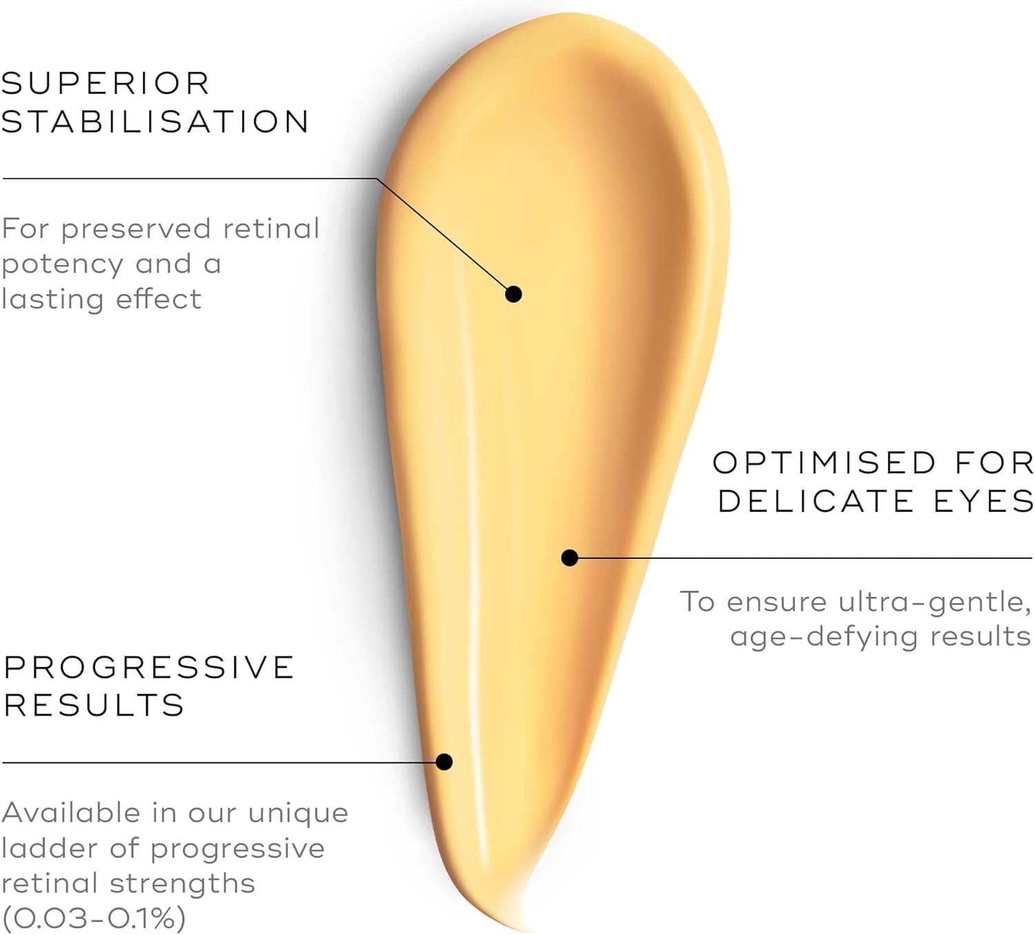 - Twin-Encapsulated Retinaldehyde is proven to work up to 11 times faster than retinol*. This expertly optimised retinol eye cream is available in 3 strengths (0.03-0.1%) for progressive visible results that become more evident over time.