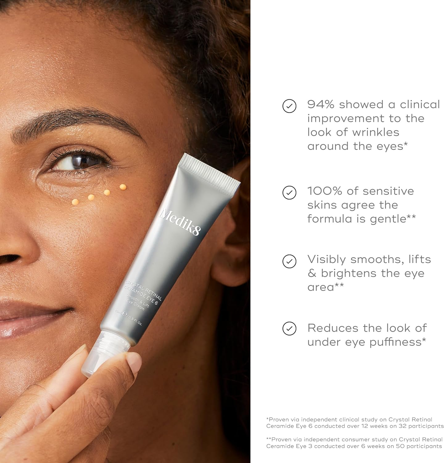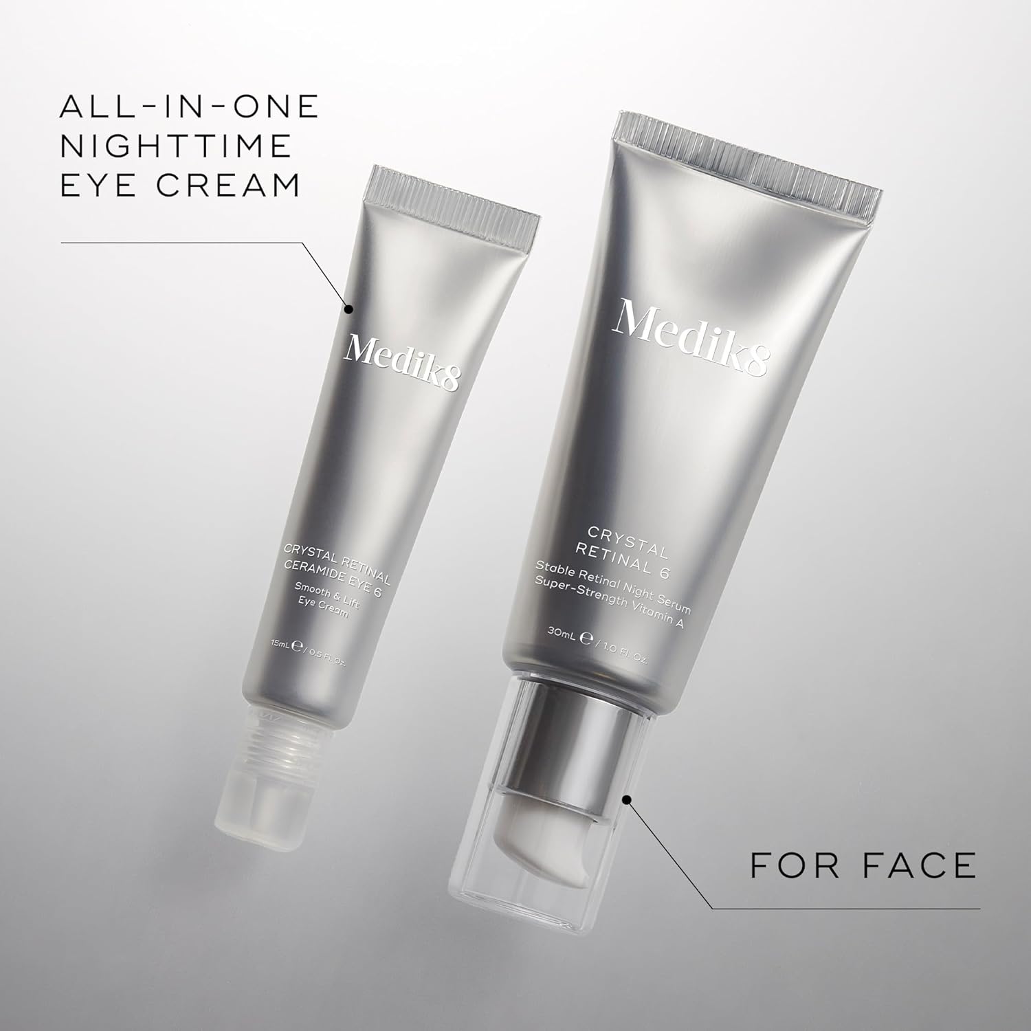 - Restore the appearance of youthful-looking eyes with Medik8’s new all-in-one solution to night time eye care. Inspired by the original ground-breaking vitamin A facial serum, Crystal Retinal, completely reinvented into an overnight eye cream for crow’s feet, wrinkles, and under eye puffiness.