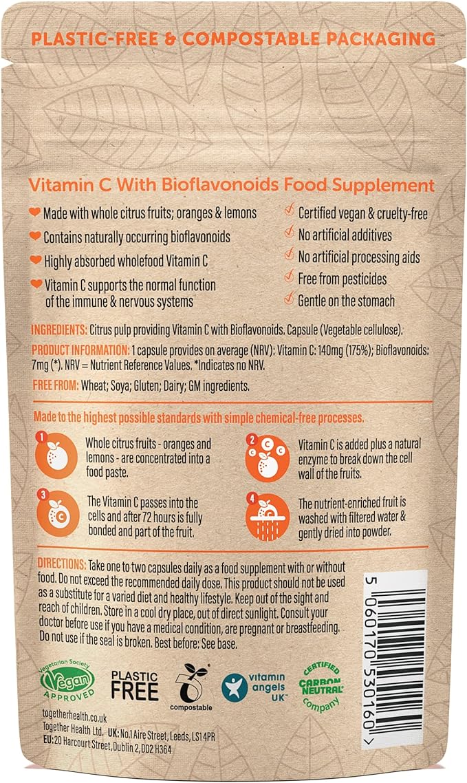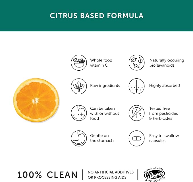 CITRUS-BASED VITAMIN C: Our Vitamin C is made with the highest quality organic citrus fruits, including juicy oranges and lemons. So our vitamin C capsules come with all the natural constituents of these fruits to improve absorption, retention and utilisation of the vitamin.
